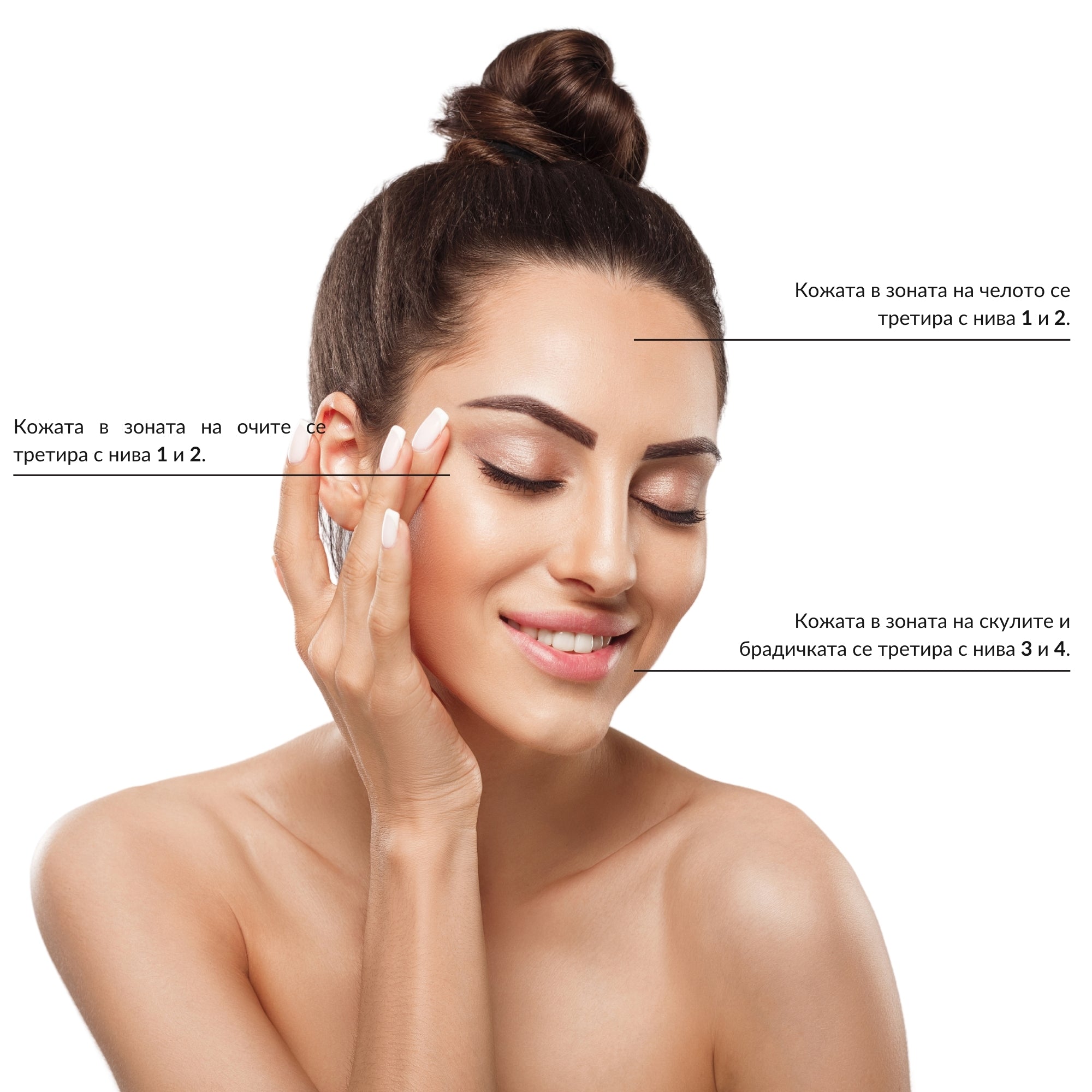 - Procedura nedureroasa si neinvaziva, sigura pentru toate tipurile de piele.