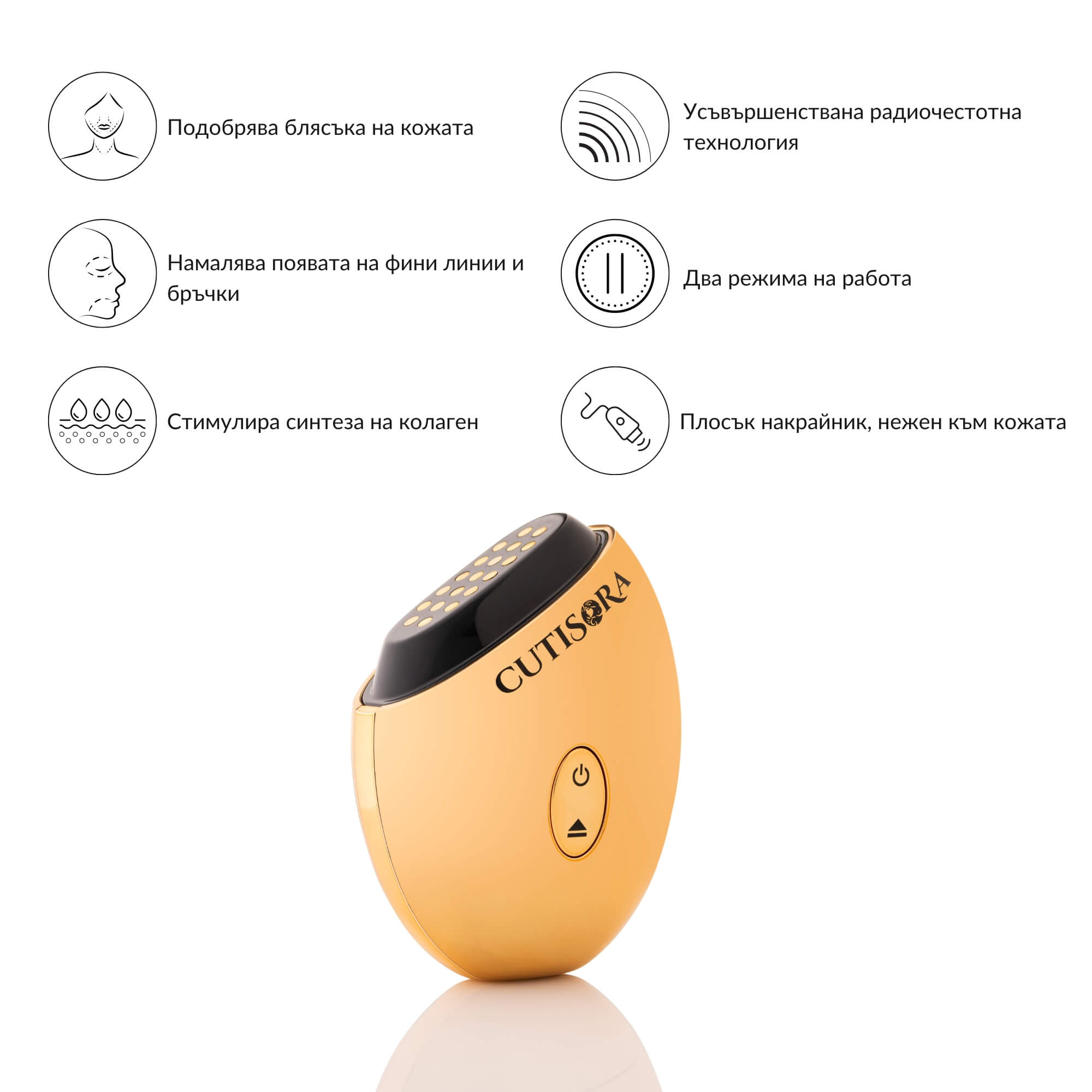 Aparatul RF stimulează producerea de colagen - o proteină care menține pielea elastică și fermă, ducând la un aspect mai tineresc.